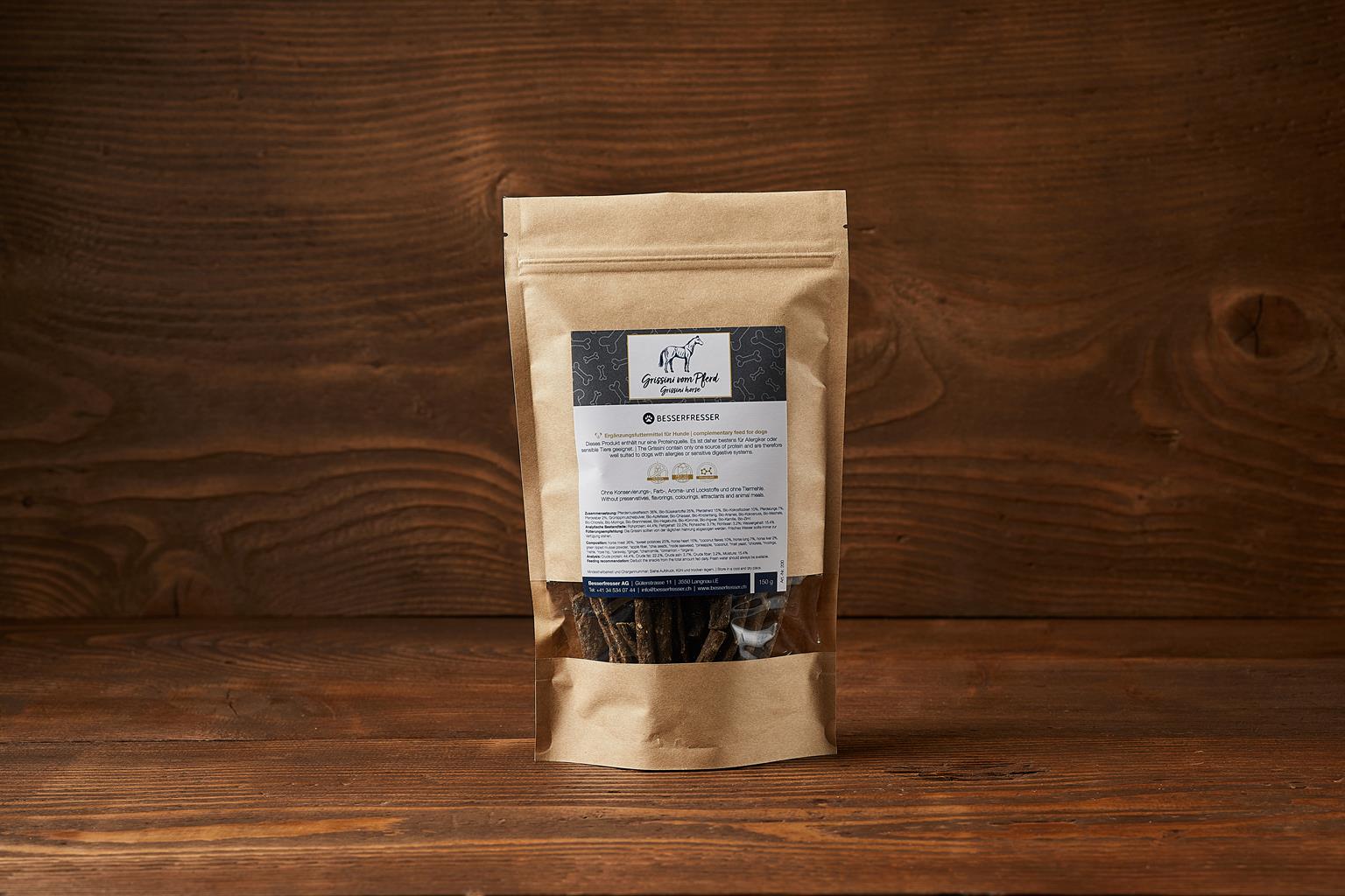 Pour ce produit, nous utilisons du cheval de pâturage comme source de protéines, incorporé dans des herbes riches en nutriments. Un délice pour tous les chiens.